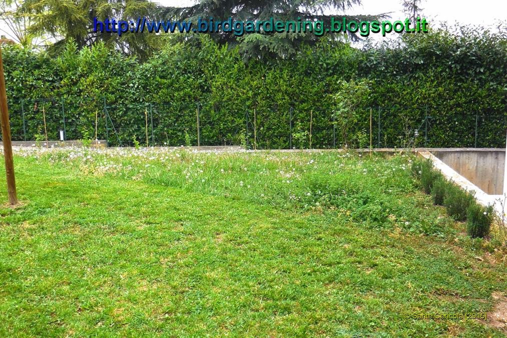 Negli ultimi anni, al fine di migliorare naturalisticamente il mio prato di sola erbetta, ho prodotto le seguenti operazioni ed il risultato è che, per un lembo piccolissimo di territorio, ho creato delle condizioni che matureranno sempre più negli anni e che favoriranno la ricerca del cibo da parte degli uccelli insettivori, frugivori e semivoli; inoltre le siepi informali di piante autoctone che cresceranno forniranno altro cibo, rifugio, sito di sosta ad uccelli e piccoli mammiferi come il riccio ed il prato, nella parte lasciata al naturale, a fronte delle 3 specie di tre anni fa, delle circa 10-12 specie attuali, si arricchirà sempre più di piante che seppur comuni nel territorio, sono tuttavia utili agli insetti e agli uccelli.